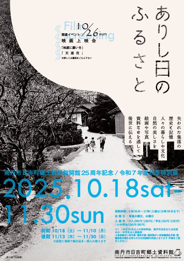 ![]() | 写真でふりかえる南丹市 (南丹市立文化博物館と共催) | 前期:2011.4.29 ~2011.7.10 後期:2011.7.16 ~2011.9.19 |